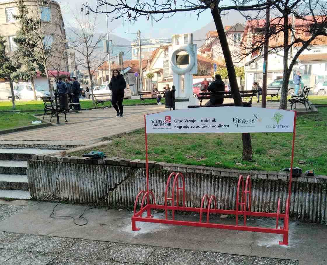 Četiri držača za bicikle postavljena su na isto toliko mesta u širem centru grada, i to kod Pedagoškog fakulteta, pored Višeg suda, na ulazu u Gradski park i ispred Doma zdravlja. Ovo je donacija osiguravajuće kompanije Wiener Städtische i realizuje se nakon konkursa ,,Održivi gradovi“ Ekoopština, u okviru kojeg je Grad Vranje nagrađen u oblasti održive urbane mobilnosti. Ukupna vrednost donacije je 1.200 evra.