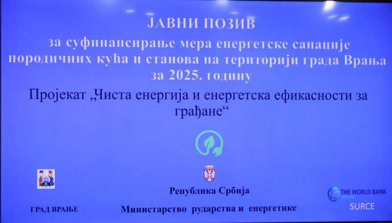 U sali Skupštine grada predstavljen je Javni poziv za sufinansiranje mera energetske sanacije porodičnih kuća i stanova na teritoriji grada Vranja za 2025. godinu. Prisutne je pozdravila Danijela Milosavljević, članica Gradskog veća koja istakla da je ovo prvi info dan koji se organizuje u okviru javnog poziva i da očekuje da će ovo postati praksa u narednom periodu. ,,Info dan je novina i prilika da se privrednici i građani upoznaju sa merama za energetsku sanaciju svojih objekata i mogućnost za upoznavanje sa detaljima javnog poziva. Već par godina unazad Grad Vranje sprovodi ovu meru, zahvaljujući kojoj je veliki broj građana sanirao svoje objekte. Novina je da su ovim javnim pozivom obuhvaćene i socijalno ranjive kategorije građana i da su za njih uslovi drugačiji, u smislu da oni dobijaju 90% sredstava od ukupne vrednosti predviđenih radova“, istakla je gradska većnica. Danijela Bandović, rukovodilac Službe za energetski menadžment i energetsku efikasnost održala je prezentaciju javnog poziva, koji se realizuje u okviru projekta „Čista energija i energetska efikasnost za građane“, a koji sprovodi Grad Vranje sa Ministarstvom rudarstva i energetike.