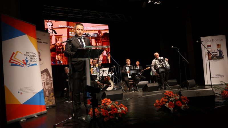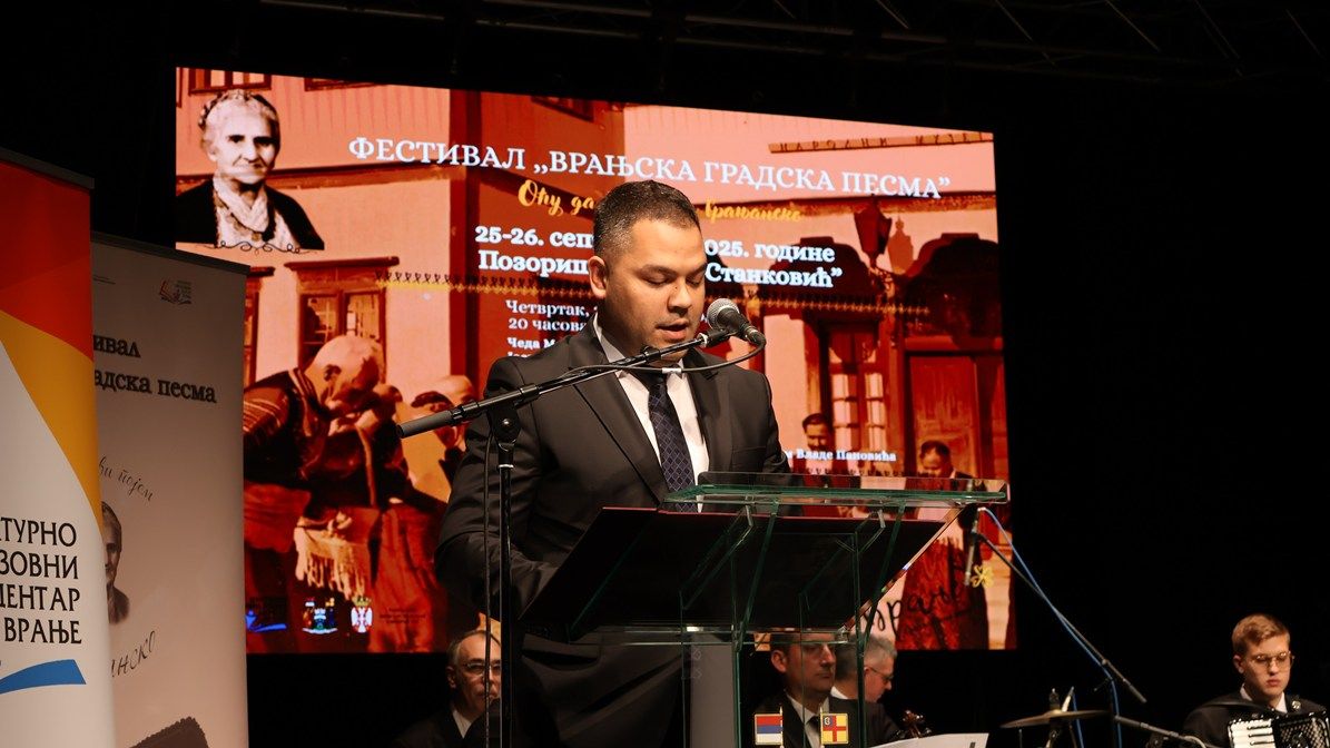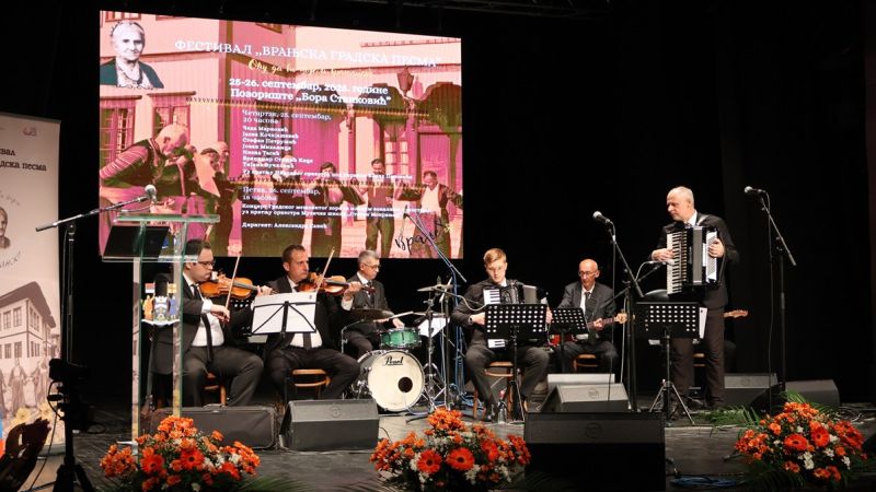 Zamenik gradonačelnika Milan Ilić otvorio je večeras u Pozorištu ,,Bora Stanković“ festival ,,Vranjska gradska pesma“. Obraćajući se prisutnima on je izrazio zadovoljstvo zbog održavanja manifestacije, koja, kako je naglasio, slavi ljubav prema muzici i čuva i promoviše muzičku tradiciju našeg kraja. ,,Vranjska gradska pesma specifično je nematerijalno kulturno dobro, posebnog tonaliteta i vibracije. Ona nosi jedinstvenu emotivnu energiju koja duboko dotiče  slušaoca pričajući nam o ljubavi, radosti, seti i svakodnevnom životu nekadašnjeg Vranja. Ove pesme nisu samo melodije. One su naš identitet, most između prošlosti i sadašnjosti, sećanje na naše pretke i poklon budućim generacijama“, istakao je Ilić. Dodao je da je  Vranje grad bogate muzičke istorije i da je ovaj festival  prilika da se podsetimo  starih kompozicija koje su nemerljivo bogatstvo naše kulturne baštine. Nakon uvodnog obraćanja publika je bila u prilica da uživa u nastupima vokalnih solista: Čede Markovića, Jasne Kočijašević, Stefana Petrušića, Jovana Mihaljice, Ivane Tasić, Branimira Stošića Kaceta i Tijane Vučković uz pratnju Narodnog orkestra pod upravom Vlade Panovića. Na programu drugog dana festivala, koji će biti održan sutra, od 18 sati, takođe u Pozorištu ,,Bora Stanković“ , je koncert Gradskog mešovitog hora sa mladim vokalnim solistima uz pratnju orkestra Muzičke škole ,,Stevan Mokranjac“.