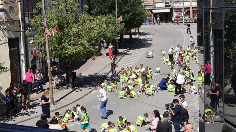 U okviru ,,Evropske nedelje mobilnosti“, danas su deca PU ,,Naše dete“ i predstavnici ŠAF-a crtali na kolovozu u ulici Kralja Stefana Prvovenčanog, koja je danas zatvorena za motorna vozila u periodu od 10.00 do 13 sati.