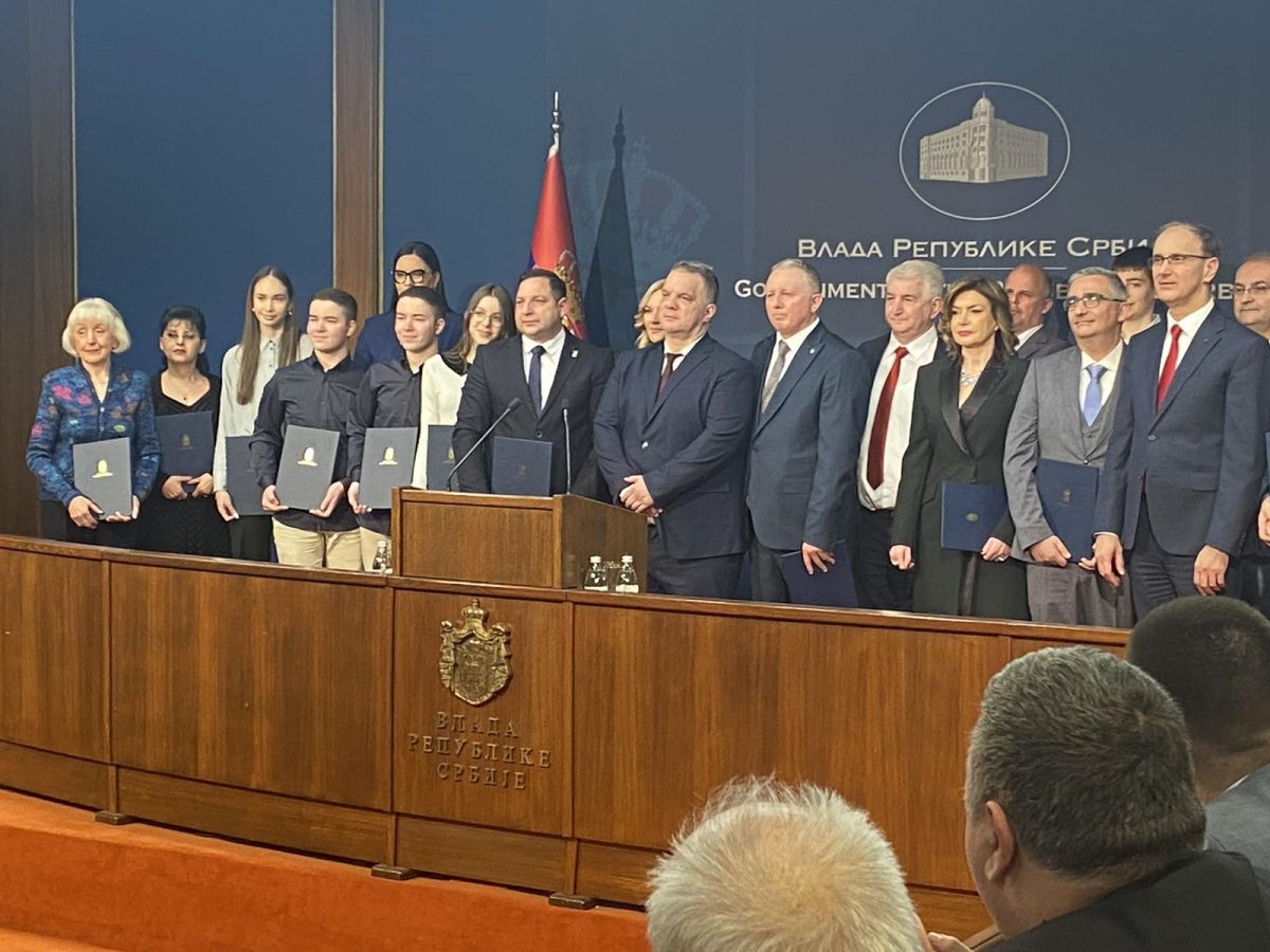 Председник Владе Србије Ђуро Мацут и министар просвете Вук Дејан Станковић уручили су данас, на церемонији у Влади Србије, 31 Светосавску награду појединцима и институцијама за постигнуте изузетне резултате у области образовања и васпитања за 2025. годину.