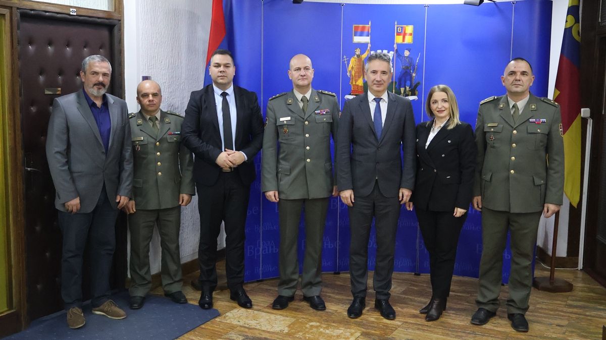 Поводом обележавања Дана града, градоначелник Врања др Слободан Миленковић, са сарадницима, приредио jе приjем за припаднике 4. бригаде Копнене воjске Србије.