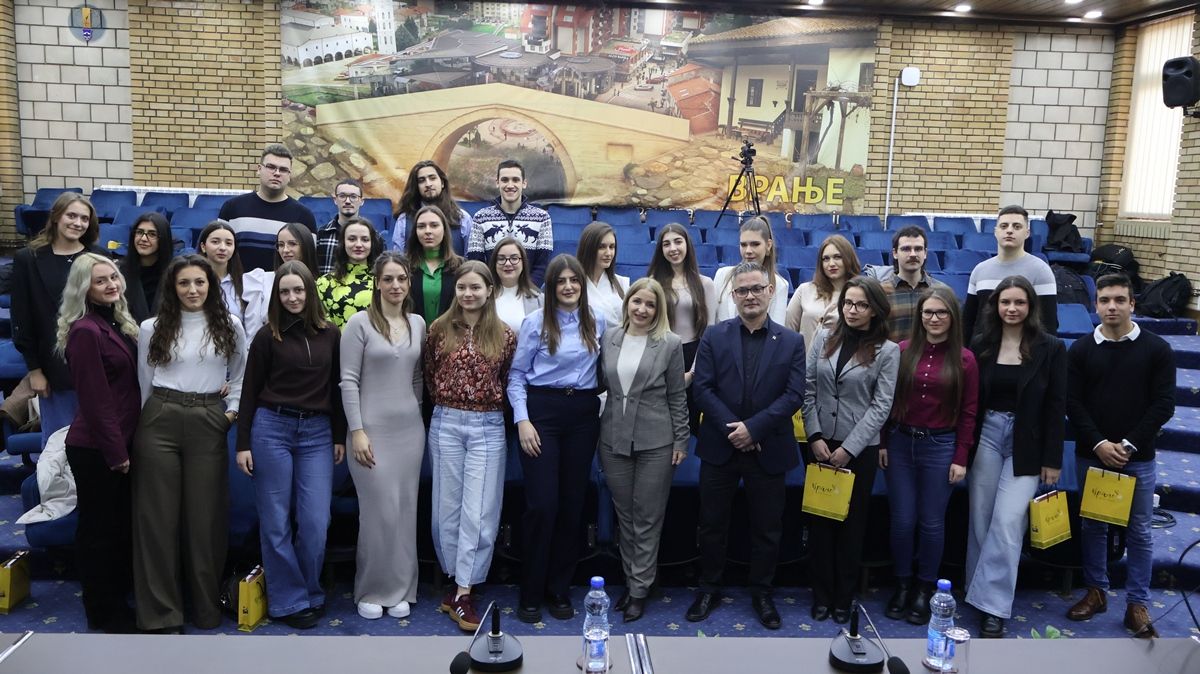 Председница Скупштине града Зорица Јовић и члан Градског већа Дарко Раденковић приредили су пријем за студенте са територије Града Врања, који су у протеклој години остварили запажене резултате. Председница Скупштине Зорица Јовић пожелела је студентима добродошлицу у градску кућу и честитала на изванредном успеху. ,,Драго ми је да и 2026. годину започињемо једним од најлепших догађаја, а то је награђивање најуспешнијих студената. Нека вам ова награда буде мотив да у будућем периоду радите још више, да будете још упорнији и да једног дана своје знање примените у Врању. Запамтите, једино богатство које вам нико не може одузети је знање. Желим свима вама много успеха како на личном, тако и на пословном плану. Наставите да корачате стазом коју сте, сигурна сам, већ добро утабали“, рекла је председница. У име награђених студената захвалила се Емилија Додић, студенткиња Филозофског факултета у Нишу. Ове године награђена су 54 студента. Студенти који су остварили просек од 9,25 до 9,50 награђени су износом од 20 хиљада динара, док су сви са просеком преко 9,51 добили награду у висини од 30 хиљада динара.