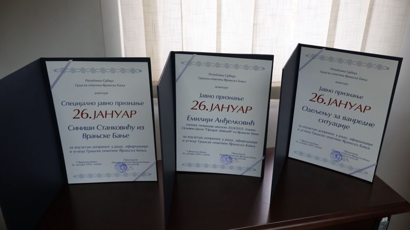 Поводом Дана Градске општине Врањска Бања, Специјално јавно признање ,,26. јануар”, додељено је Синиши Станковићу из Врањске Бање, који је сопственим возилом учествовао у гашењу пожара. Јавна признања „26. јануар“, додељена су Одељењу за ванредне ситуације за изузетан допринос у гашењу пожара на подручју Врањске Бање и околине и Емилији Анђелковић, ђаку генерације у школској 2024/2025. години, ОШ ,,Предраг Девеџић”.