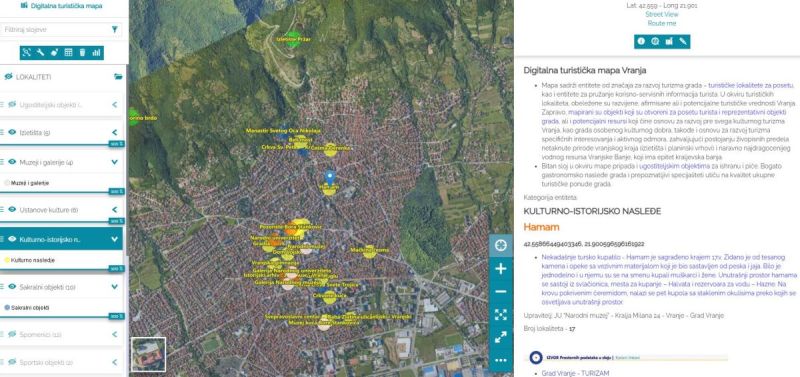 ГИС Врање ГеоПортал објављује Дигиталну туристичку мапу Врања. Циљ је креирање квалитетног дигиталног водича који ће допринети бољој туристичкој информисаности како туриста који долазе у град, тако и локалног становништва.