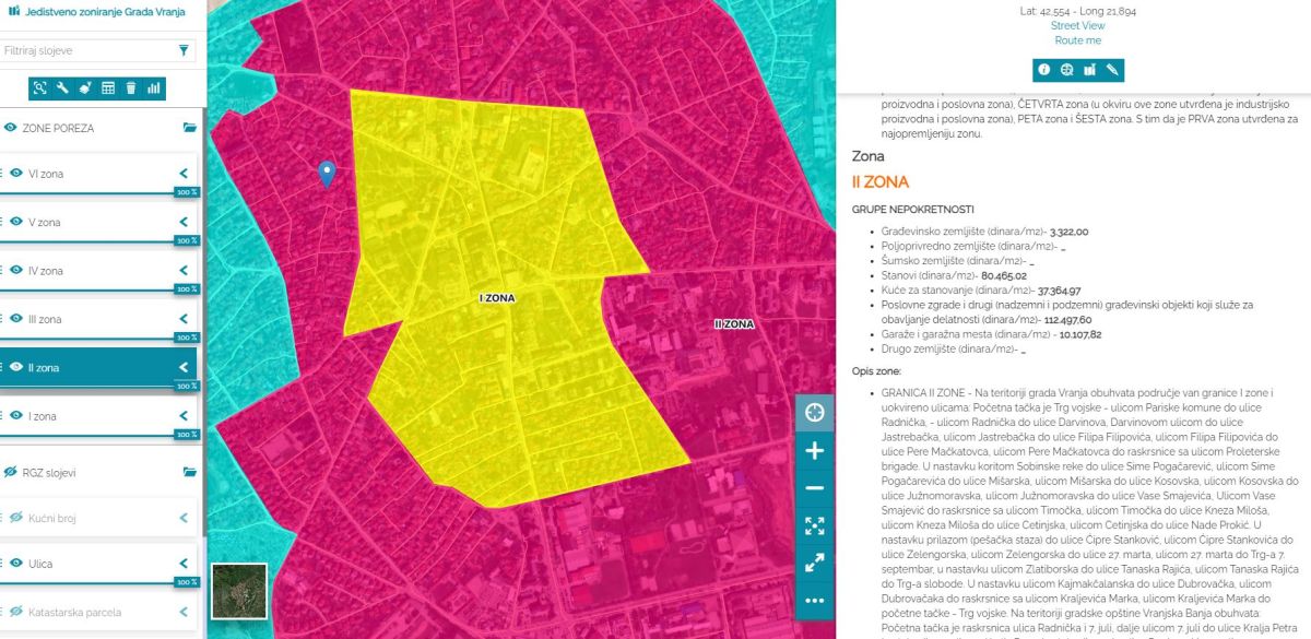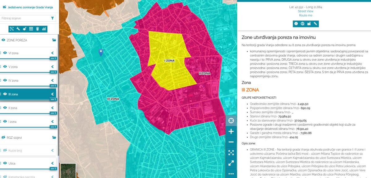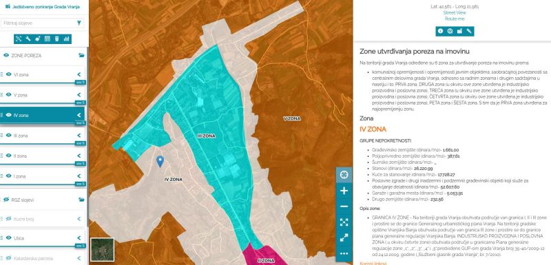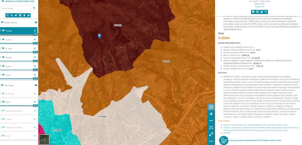 ГИС - Јединствено зонирање Града Врања – (Зоне за потребе утврђивања пореза на имовину)