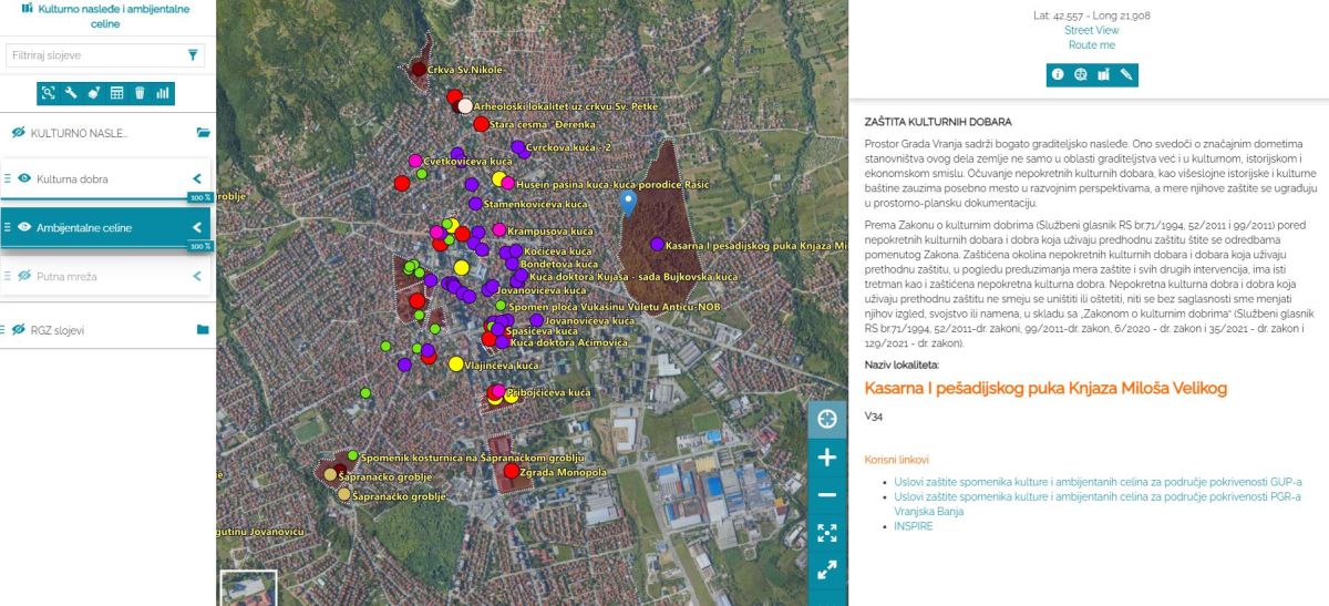 GIS- Kulturno nasleđe i ambijentalne celine - Zaštita kulturnih dobara (Vranje - Vranjska Banja)