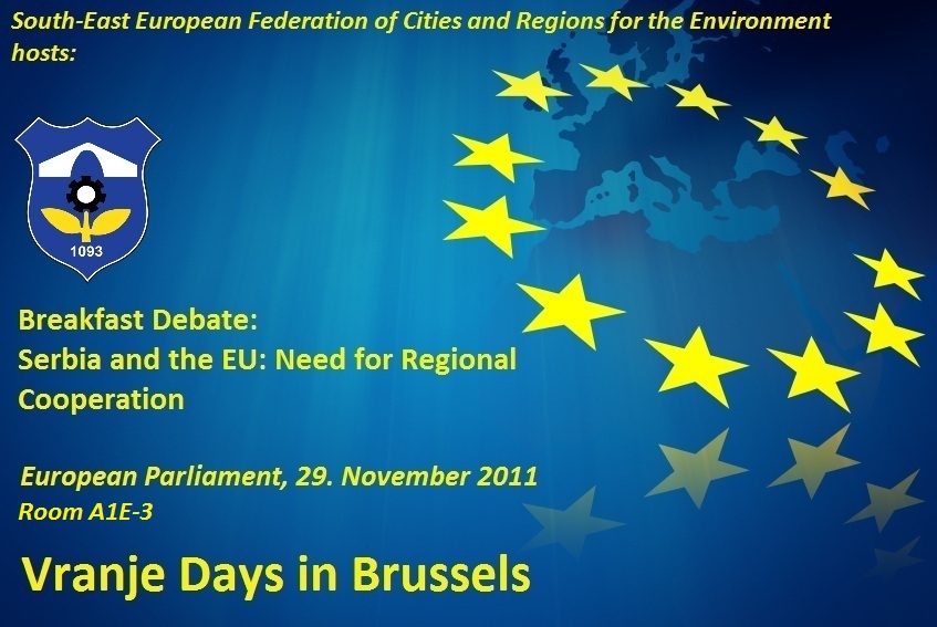 Grad Vranje i Federacija gradova i opština Jugo – Istočne Evrope svečano su obeležili početak „Dana Vranja u Briselu“ koji će trajati do 4. decembra. Delegacija Vranja se susrela sa predstavnicima Britanske Privredne komore, ekspertima i kompanijama koje se bave investicijama u oblasti obnovljivih izvora energije. Tokom svoje četvorodnevne posete delegacija grada Vranja, na čelu sa gradonačelnikom Miroljubom Stojčićem, će se susresti i sa predstavnicima Evropskog parlamenta, Komiteta regiona, Privrednim komorama i ostalim Evropskim institucijama. Delegacija grada Vranje će danas, u Evropskom parlamentu, uz evropske poslanike Anu Ibrišagić i Tanju Fajon, kao i potpredsednika komiteta za odnose sa zemljama Zapadnog Balkana Viktorom Bostinaru, biti domaćin velikom broju evropskih zvaničnika i predstavnika evropskih institucija na debati: “ Srbija i EU: Potreba za regionalnom saradnjom”. Ovaj prvi i značajni korak u konkretnoj saradnji grada Vranja i Federacije gradova i opština sa Evropskom unijom, ima za cilj predstavljanje potencijala grada Vranja, razmenu ideja i iskustava sa gradovima kako EU tako i regiona Zapadnog Balkana, kao i direktan kontakt sa predstavnicima Evropske Unije i međunarodnim investitorima. Tokom „Dana Vranja u Briselu“, gradonačelnik Stojčić će svečano potpisati Sporazum gradonačelnika Evropskih gradova.