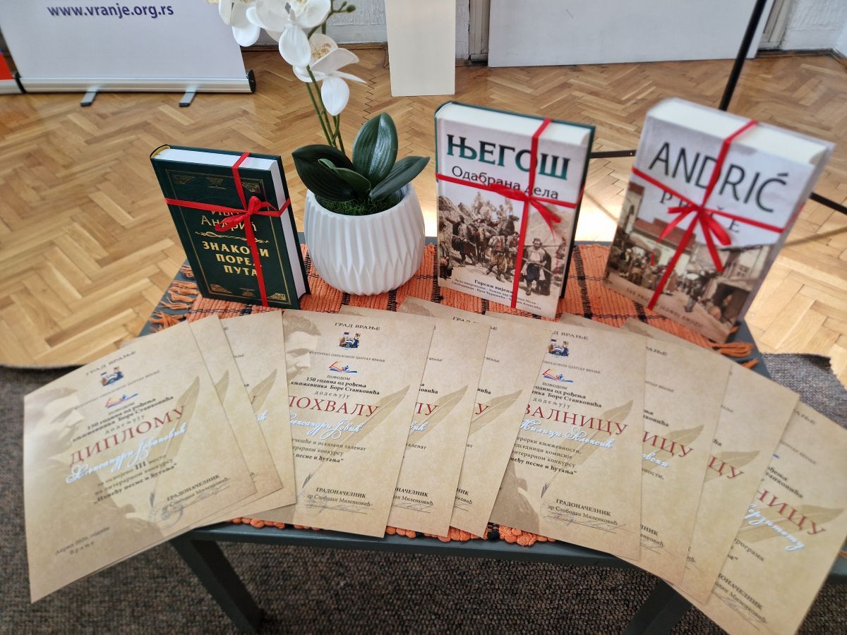 U Galeriji Narodnog univerziteta organizovana je svečana dodela diploma i nagrada pobednicima literarnog konkursa „Između pesme i ćutanja“, raspisanom povodom 150 godina od rođenja Bore Stankovića. U ime gradskog rukovodstva prisutne je pozdravio zamenik gradonačelnika Milan Ilić. ,,Na konkurs je pristiglo mnogo radova što govori da Bora i dalje živi među nama, naročito među mlađom populacijom. Bora Stanković dao je ogroman doprinos ne samo srpskoj, već i svetskoj književnosti i stalno smo svedoci koliko su njegova dela poštovana i van granica naše zemlje. Čestitam nagrađenima, ali i svima koji su učestvovali na konkursu i usudili se da pišu na ovu tešku temu. Ovo je pokazatelj da će Bora Stanković nastaviti da živi u svima nama i da ćemo ga se dostojno sećati, kao i i da ćemo njegovo stvaralaštvo sačuvati od zaborava u budućnosti“, rekao je zamenik gradonačelnika. Na svečanoj dodeli nagrada govorila je i Izabela Savić, direktorka Kulturno-obrazovnog centra istakavši da delo Bore Stankovića nije samo književnost, već živa slika jednog vremena, duboka emocija i tišina koja govori glasnije od reči. ,,Konkurs ,,Između pesme i ćutanja“ nosi u sebi upravo ono što je obeležilo Borino stvaralaštvo, napetost između izgovorenog i prećutanog, između čežnje i sudbine, između onoga što srce želi i onoga što život nameće. U tom prostoru između pesme i tišine rađaju se najiskrenije priče. Danas nagrađujemo one koji su imali hrabrosti da uđu u taj prostor. Vaši radovi pokazali su da književnost i dalje živi i traje, baš kao delo Borisava Stankovića“, naglasila je direktorka.