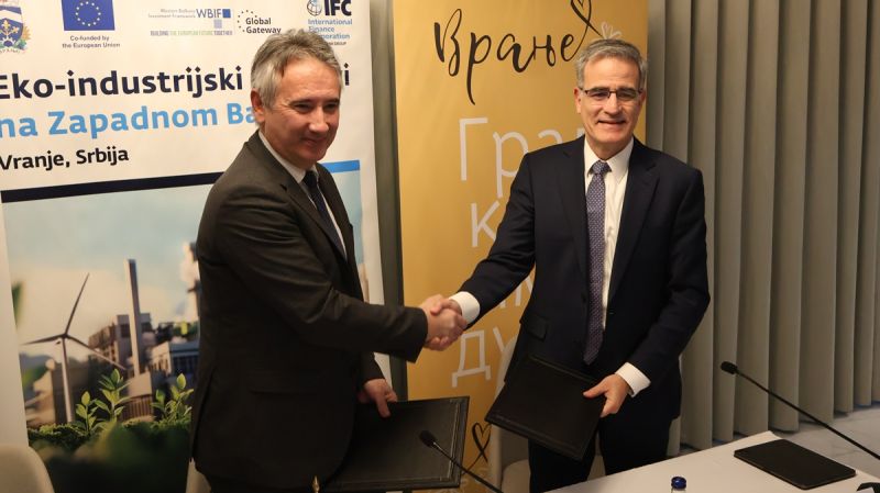 Gradonačelnik Vranja dr Slobodan Milenković i Viši regionalni menadžer IFC-a za Jugoistočnu Evropu, Marcelo Castellanos, potpisali su Ugovor za realizaciju pilot projekta „Eko – industrijskog parka“.