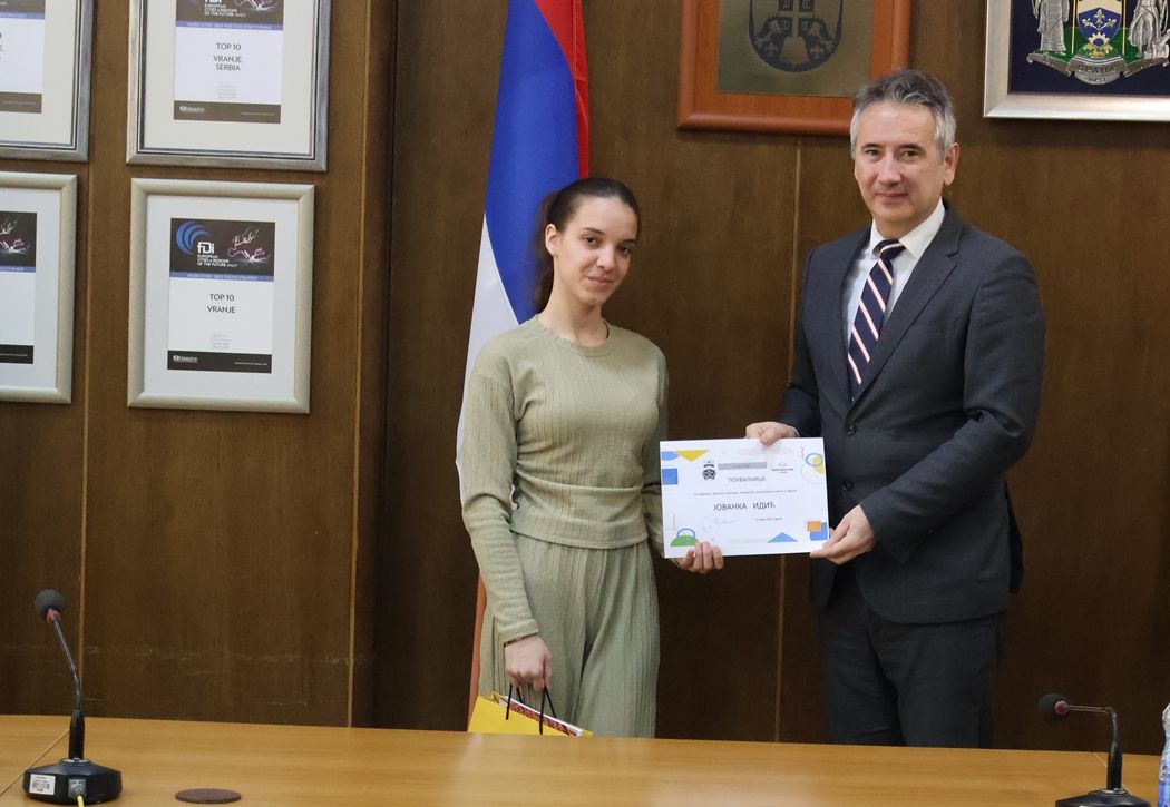 Gradonačenik Milenković uručio je pohvalnice i mobilne telefone Matijasu Zećiroviću, Jovanki Idić, Mariji Selimović, Marisi Bajrami, Miroslavi Raimović, učenicima srednjih škola, kao i Selistaru Demiroviću, najboljem romskom studentu. Prijemu su prisustvovali i direktori škola iz kojih su nagrađeni učenici.