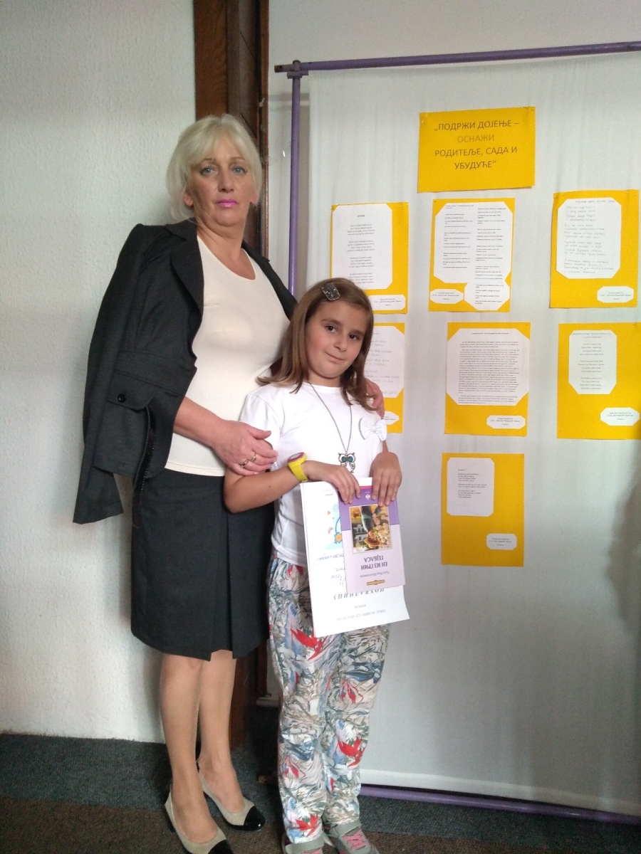 „Моj таленат за писање за мене jе игра речима коjа се претвара у веселе стихове коjе оловком стављам на папир. Jунаке тих стихова оживим цртежима како би се са мном играли и били ту увек за мене. Инспирациjу налазим у природи гледаjући животиње, птице и инсекте. Обожавам сове и гавранове због бабиних прича у коjима су они главни ликови. Свиђа ми се како они изгледаjу, како се крећу и оглашаваjу. Захваљуjући мачку Грицку моjа песма „Волим Грицка”, посвећена њему, награђена jе неколико пута и обjављена у Зборнику дечjих песама „Земља снова” са другим дечjим радовима, као и у Малом забавнику. Никад нећу да заборавим и дан када сам позвана код директорке моjе школе, Марине Стоjановић. Другари из одељења су ми рекли да ћу бити кажњена, jер када те зову код директорке, кажу, ниjе добро, али нису знали да наша директорка не кажњава децу, већ награђуjе. И тако сам jа награђена књигом „Илиjада и Одисеjа” за резултате у литерарном и ликовном стваралаштву у школскоj 2019/2020. години'', прича нам ова весела талентована девоjчица. Када не иде у школу и нема пуно обавеза, ужива да прави животиње од разних ствари. И то jе њен хоби.